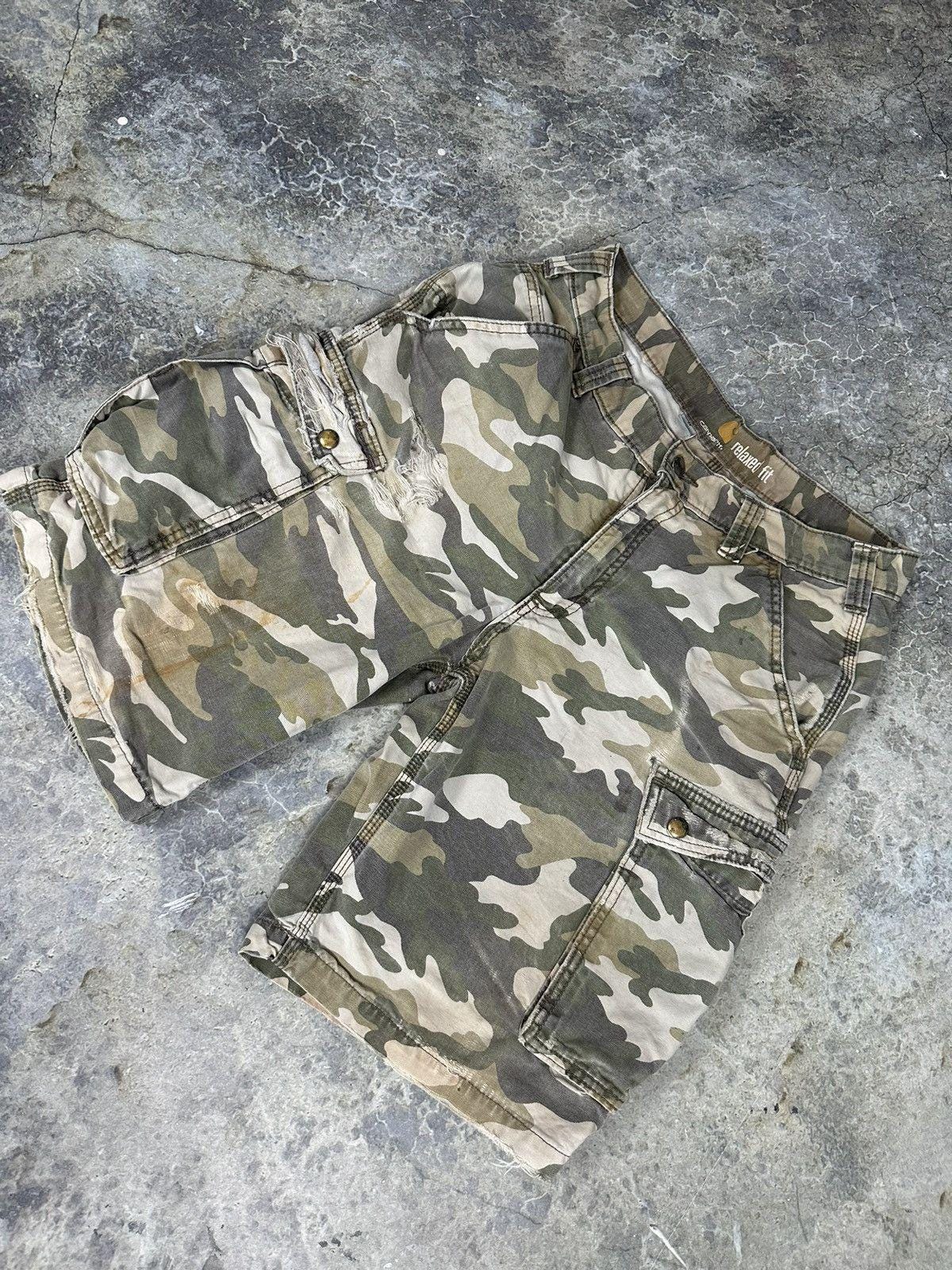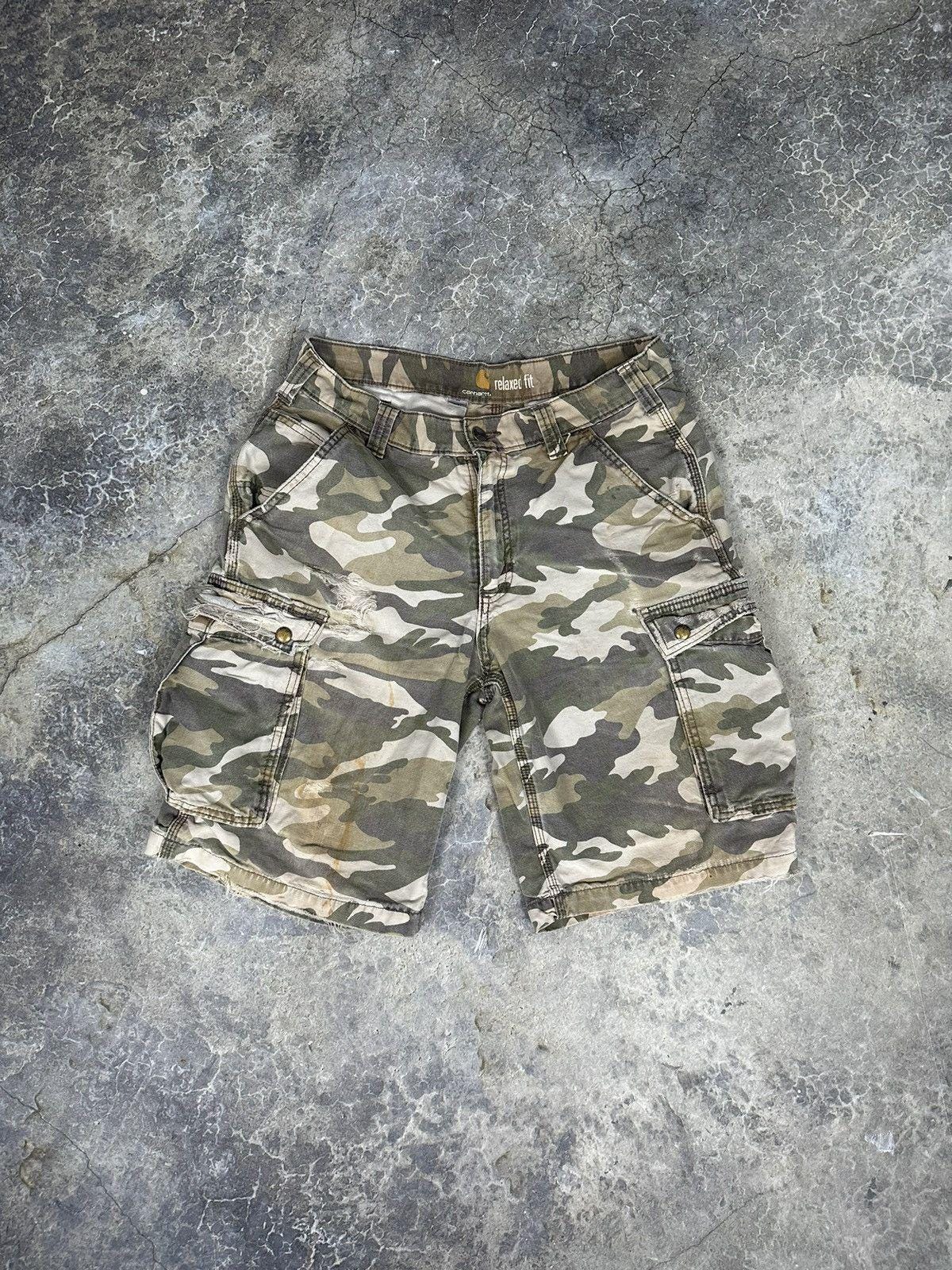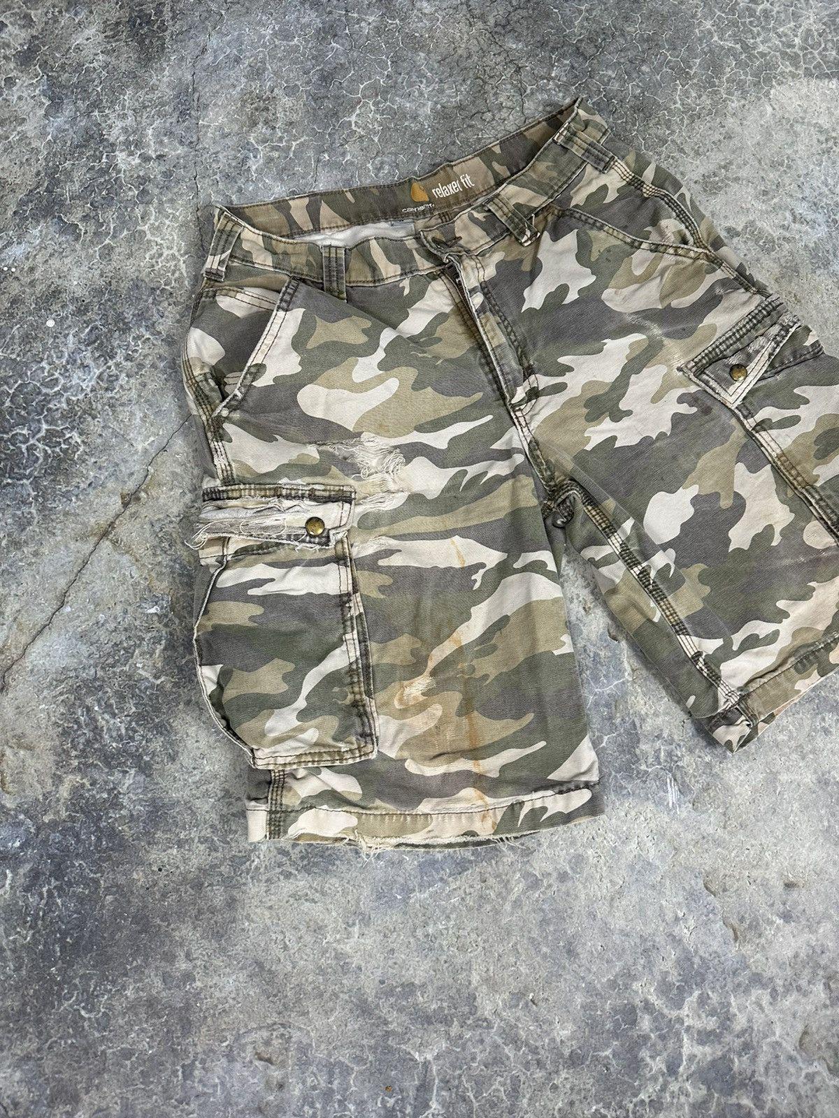 Thrashed Carhartt Camo Cargo Shorts